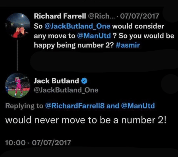 来源:24直播网01-07 18:0024直播网01月07日讯 ,曼联官方宣布租借签下前英格兰国门巴特兰德,他将在红魔担任二号门将。不过随后搞事情的《太阳报》挖出了巴特兰德5年前在社交媒体上说过的话,他曾表示自己永远不会去曼联当二门。