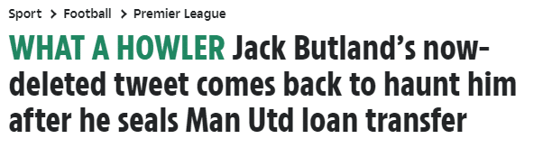 《太阳报》还表示,巴特兰德已经把这条动态删除。