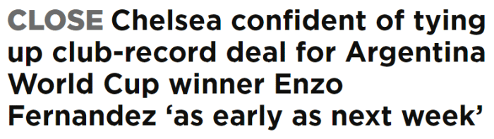 该媒体表示,切尔西和本菲卡在1月1日恢复谈判,目前谈判正在持续推进中,切尔西对这笔交易的达成很有信心,最早下周他们就能敲定恩佐的转会。