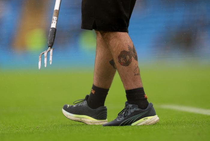 除了前红魔青训球员安德烈亚斯·佩雷拉一度点球为富勒姆扳平之外,伊蒂哈德球场的一名球场管理员的小腿上,赫然有曼联队徽纹身。