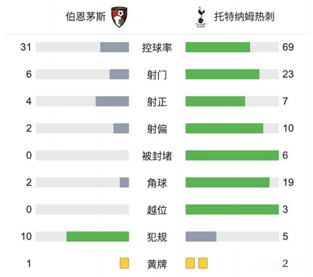 下半场补时5分钟,最终,热刺客场3-2伯恩茅斯。