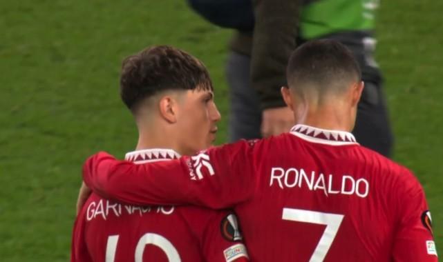 本场比赛,加纳乔首次代表曼联一线队先发,发表现亮眼,他数次突破很有威胁。赛后,他也得到了偶像C罗的认可,后者搂着他频繁交流。