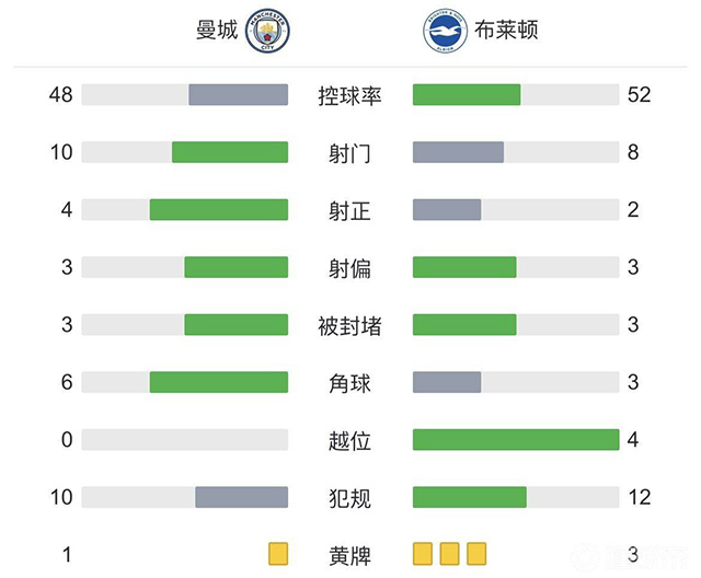 第19分钟,德布劳内下底传中门前桑切斯放倒哈兰德裁判没有表示,随后var提示没有犯规。第22分钟,曼城进球!埃德森后场长传,哈兰德胸部停球后过掉出击的桑切斯,抗开韦伯斯特后推射空门得手。曼城1-0布莱顿。