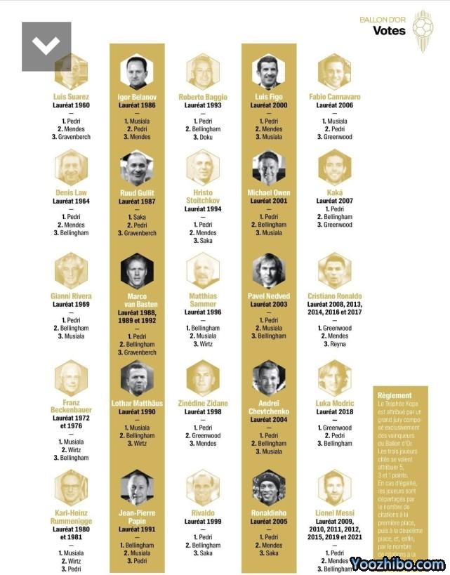 众所周知,科帕奖的评选是由前金球奖得主投票决定。而在今年的科帕奖投票中,2021年为科帕奖投票的25位前金球奖得主中,有23人继续为2022年科帕奖投票。只有两人缺席,分别是五次获得金球奖的C罗,和1964年金球奖得主丹尼斯-劳,但后者现年已82岁,不投票或许因为健康原因,只有C罗明显是故意拒绝投票的。