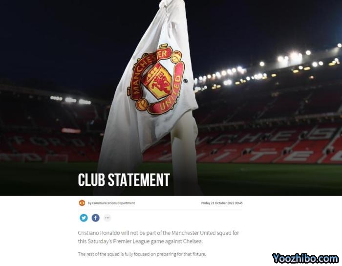 曼联俱乐部官方消息,本周六C罗不会随队前往客场出战切尔西。
