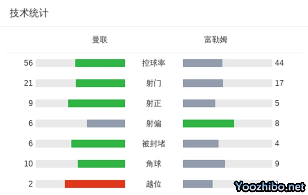 全场比赛结束,曼联主场1-2遭富勒姆绝杀。