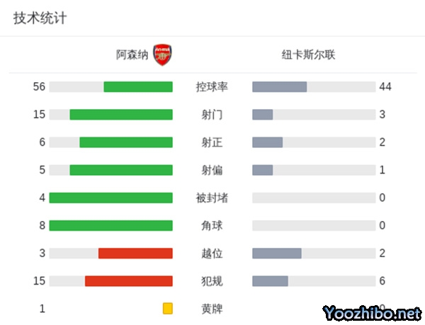 最终全场比赛结束,阿森纳4-1纽卡。