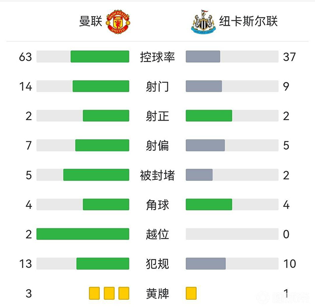 最终全场比赛结束,曼联0-0纽卡斯尔。