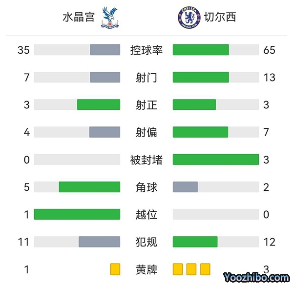 全场比赛结束,最终切尔西2-1绝杀水晶宫。