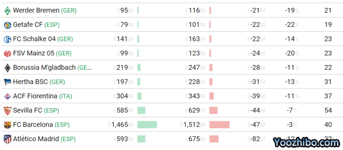 与英超相比,西甲几支强队的转会买卖做得就划算得多。马竞最近10年引进32人,花费5.93亿欧元,其估值总额6.75亿欧元,实际价格比估值低了8200万欧元。巴萨买了40名新球员,花费14.65亿欧元,估值则为15.12亿欧元,也就是少花了4700万欧元。
