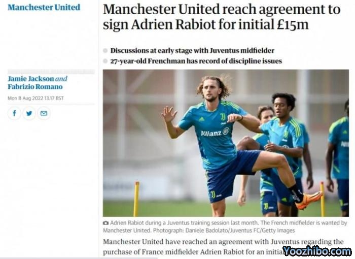 24直播网08月09日讯 罗马诺和天空体育消息,曼联尤文图斯就拉比奥转会达成一致,但还要和他的母亲达成一致。