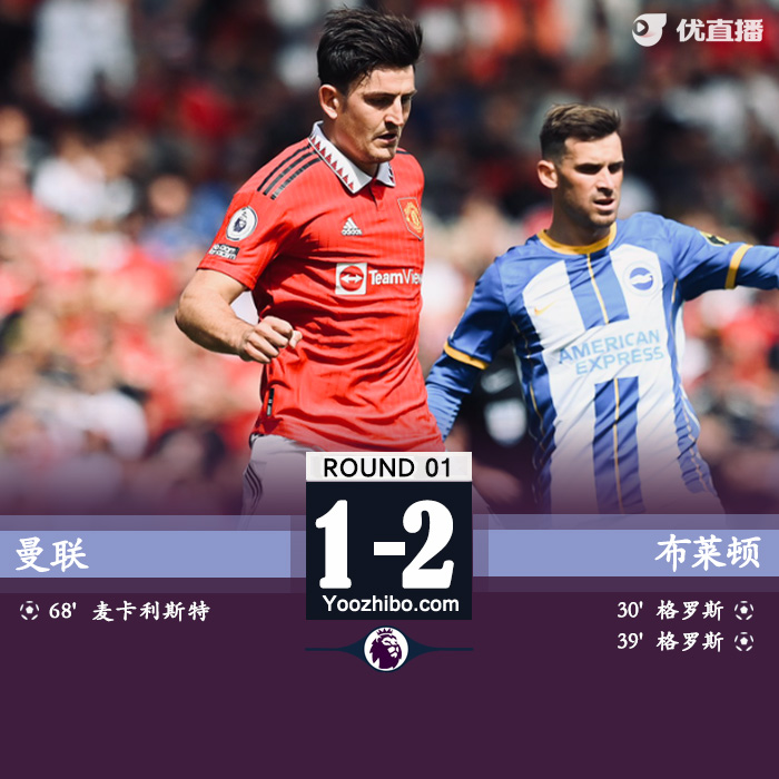 来源:24直播网08-08 01:10 24直播网讯:北京时间8月7日晚间21:00,英超联赛第1轮,曼联对阵布莱顿。上半场,达洛特、弗雷德相继失误险些丢球,格罗斯9分钟内连入两球,曼联未创造出进球良机。下半场,拉什福德屡失良机,麦卡利斯特乌龙送礼。最终,曼联1-2不敌布莱顿。