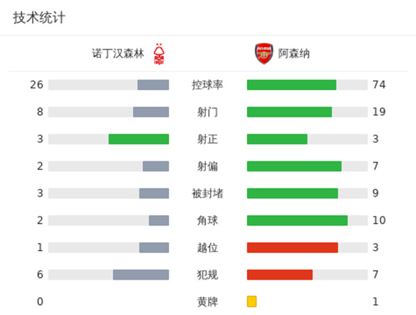 第65分钟,阿森纳前场界外球机会,直接掷给热苏斯,后者拿球来到小禁区,角度很小的情况下选择打近角,这球从特纳双腿之间穿过入网,阿森纳1-0诺丁汉森林。
