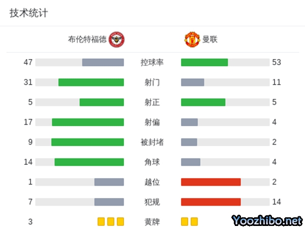 最终,曼联客场1-1战平布伦特福德