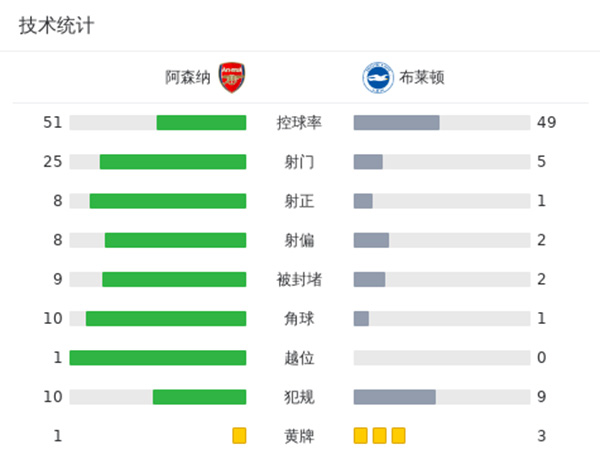 阿森纳2-0布莱顿 哈弗茨单刀破门枪手全场轰26脚