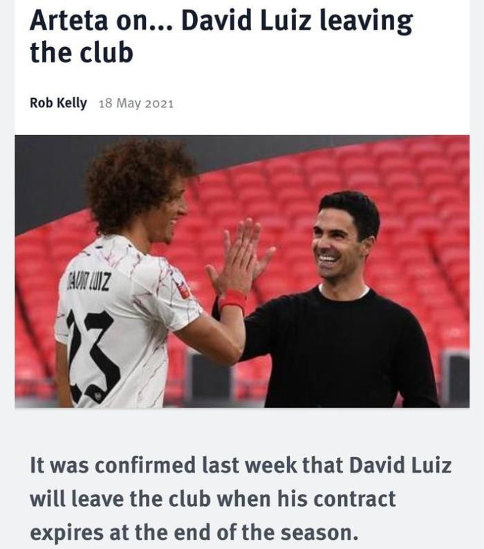 大卫-路易斯现年34岁,2019年8月他以800万英镑转会费从切尔西转会至阿森纳,两年枪手生涯,他各项赛事代表俱乐部出战73场比赛,打进4球并有1次助攻。他与阿森纳的合同将在今夏到期。