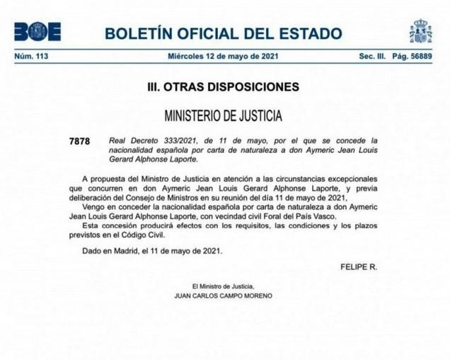 来源:24直播网05-12 19:5524直播网讯 北京时间5月12日,来自西班牙国家政府公报(BOE)的消息,根据2021年第333号法令,效力于曼城的巨星中卫拉波尔特,正式被授予西班牙国籍,届时有望代表斗牛士军团出战欧洲杯。