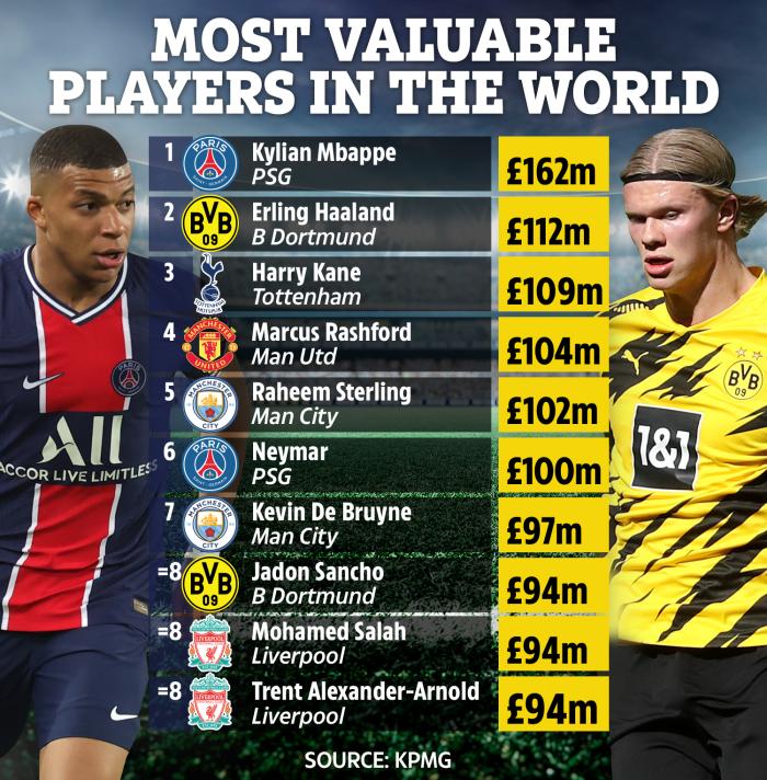 根据毕马威会计师事务所最近公布的足坛10大最具价值球星排名榜,桑乔与利物浦的萨拉赫和阿诺德排在并列第8位,估值9400万镑。因此,曼联若能7700万镑成交,将是一笔不错的转会交易。