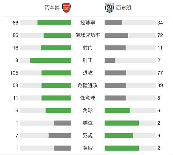 全场比赛结束,,阿森纳3:1战胜西布朗,送西布朗提前降级。