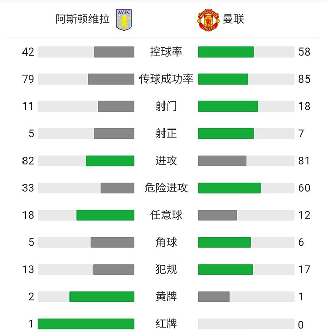 第23分钟,阿斯顿维拉率先取得进球!麦克托米奈后场被断球,麦金向前一脚直塞,禁区内左侧特劳雷接球转身,左脚抽射球门右侧得手!阿斯顿维拉1-0曼联!