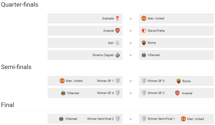 根据欧联杯此前的抽签结果,曼联所在的半决赛1号签位,被抽中在决赛中担任客队,将使用格但斯克球场的客队更衣室,如果球衣颜色冲突,则只能选择客场战袍。