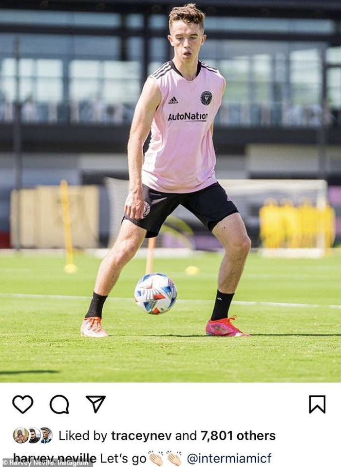 哈维·内维尔在曼联二队主要踢右后卫,但他也能胜任中场。这位选择效力爱尔兰国青的小将已经证实他离开曼联的消息,在自己社交网站发布身披迈阿密国际粉红色战袍的照片,贝克汉姆和一些曼联青训队友都为他点赞。