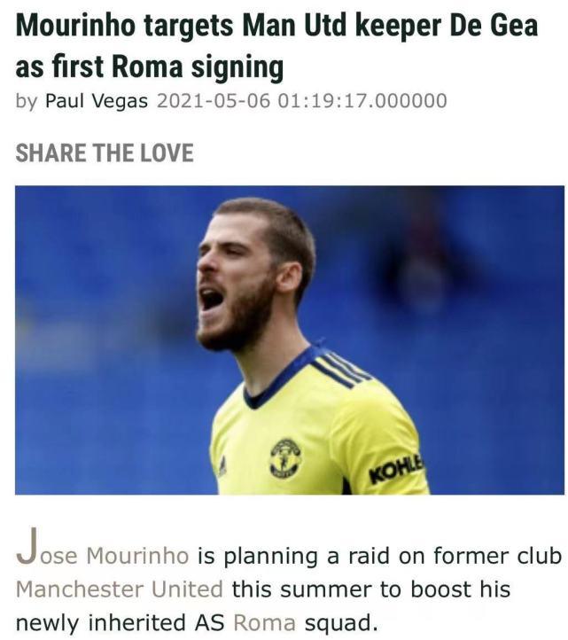 北京时间5月6日,来自《晚邮报》、《阿斯报》等多家知名媒体的透露,穆帅的首要引援就是一位有经验的门将。在穆帅的授意下,罗马接下来的重点引援目标将是德赫亚,他们尝试向曼联租借引进他。