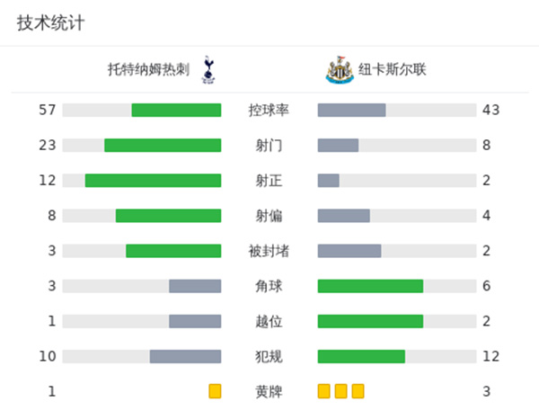 热刺4-1纽卡 孙兴慜1射2传理查利森梅开二度