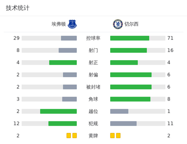 切尔西0-2埃弗顿 蓝军近5轮3负降至第12