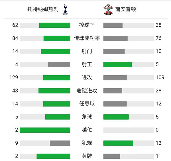 热刺2-1南安普顿 贝尔破门孙兴慜点射绝杀
