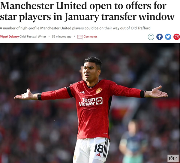 来源:24直播网12-08 15:4124直播网12月08日,来自《独立报》记者Miguel Delaney的最新消息,曼联计划在冬窗出售一些队内球星,包括卡塞米罗、瓦拉内以及桑乔,都被允许在冬窗转会,曼联愿意听取外界对他们的一切报价。