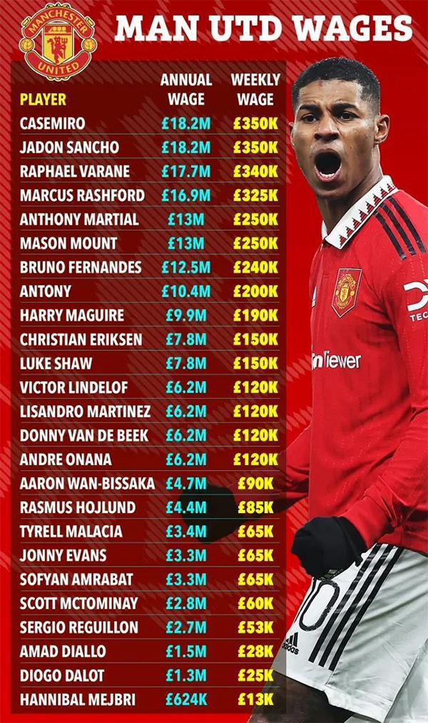 目前,桑乔和卡塞米罗都拿着曼联最高周薪35万英镑,瓦拉内周薪也高达34万英镑。送走3人,将会为曼联每周省下104万英镑的薪水。