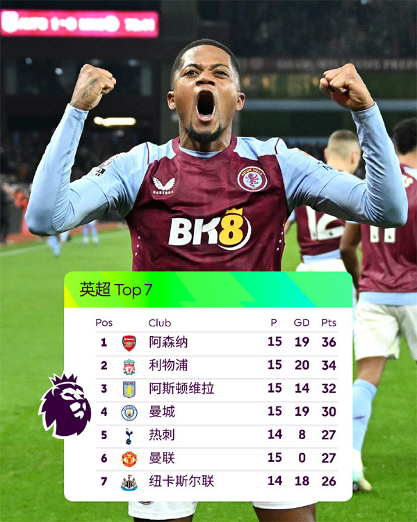 最终,维拉凭借利昂-贝利的幸运折射进球带走3分。此役获胜后,维拉英超主场7战全胜(进24球,失5球),各赛事主场8连胜,堪称是不折不扣的主场龙。