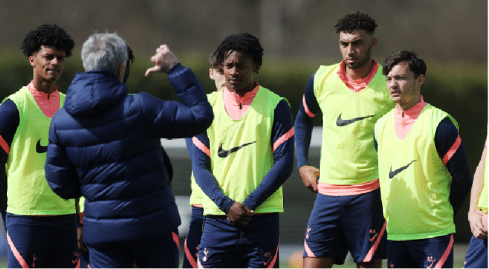 近日,热刺晒出了球队的训练照,而训练照中,穆里尼奥在给许多小将讲解战术。这些小将是穆里尼奥从青年队征召来的球员,一共有八人分别是18岁的门将托比(Tobi Oluwayemi)、20岁的中后卫布鲁克林(Brooklyn Lyons-Foster),22岁的后腰乔治(George Marsh),20岁的后腰杰米(Jamie Bowden),19岁的中场索普(索普),20岁的前锋本内特(J'Neil Bennett),20岁的前锋理查兹(Rodel Richards)和19岁的前锋基昂。穆里尼奥征召这么多小将进入一线队一起训练,不知道是为什么呢?难道穆帅对现有部分球员的表现不满,准备安排部分小将出场?老实说,球队在后卫位置上,真不如给小将一点机会,毕竟桑切斯、戴尔这些人太坑了。