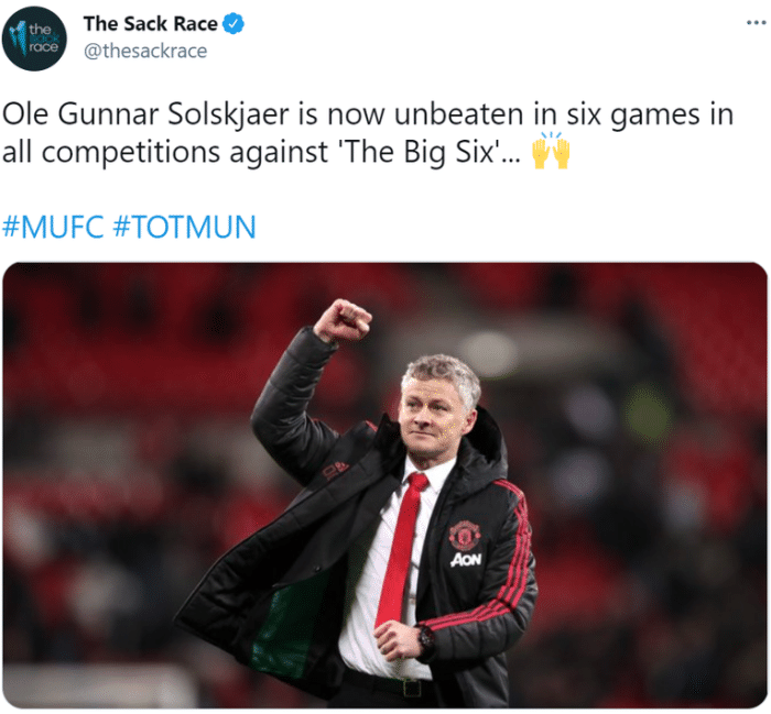 24直播网讯根据数据统计,索尔斯克亚近6次在各项赛事中遭遇Big 6球队取得3胜3平的不败战绩。