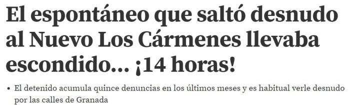 据西班牙警方透露,这名男子现年37岁,经常在格拉纳达的街头裸奔,最近已经被举报了15次。