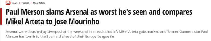 默森认为,现在的阿尔特塔和穆里尼奥越来越像了,当然是没有冠军的穆里尼奥。
