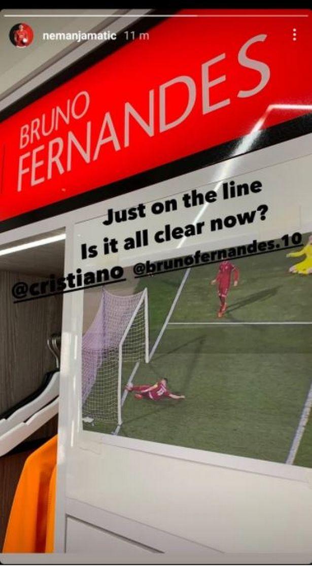 而在卡林顿训练场的更衣室中,马蒂奇用这个进球挑衅了曼联队友B费。后者已经打完国家队比赛,即将重返俱乐部,马蒂奇在他的储物柜上贴了一张照片,就是C罗破门的一瞬间,但曼联铁腰将门线通过PS向后移动到皮球之后。