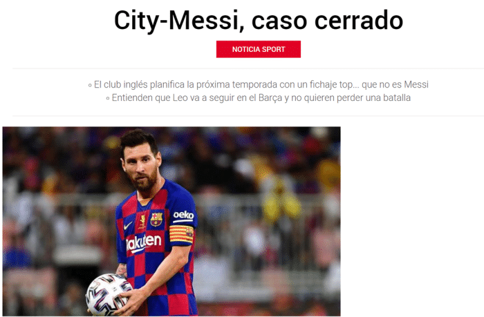 每体: 曼城已经放弃引进梅西