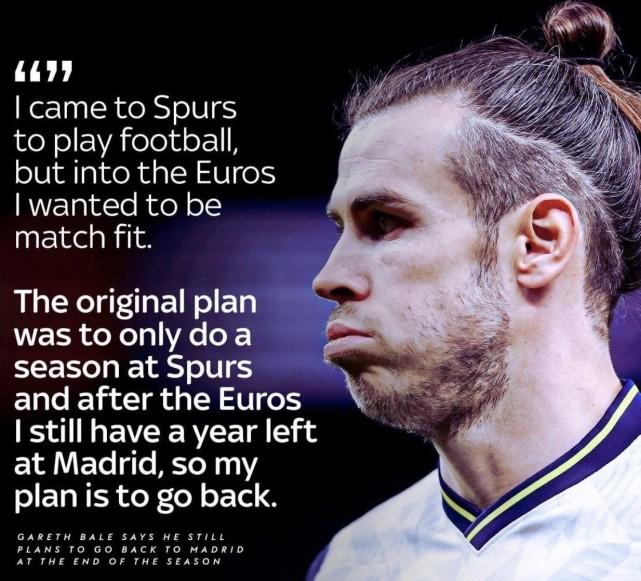 贝尔表示:“我在本赛季回到热刺主要是因为我首先想要踢比赛。为了参加欧洲杯,我想要保持比赛状态。而原来的计划就只是在热刺踢1个赛季,然后等到欧洲杯结束后,老实说我的计划是回到皇马,我和皇家马德里依然有一年的合同,我依然认为能为皇马踢球。”