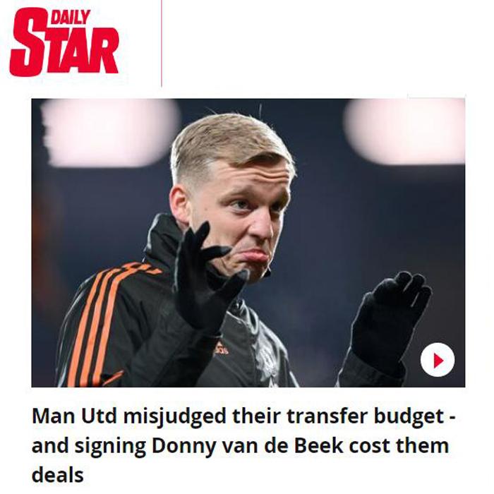 范德贝克在去年夏天之前,并没有过多与曼联联系在一起,却成为了3900万镑的夏窗首签。据说,这是因为当时俱乐部执行副主席埃德·伍德沃德因为迟迟买不到人,需要通过官宣证明自己,因此从阿贾克斯签下荷兰国脚。不料,之后俱乐部没钱可用,已经买不起桑乔或者格拉利什。