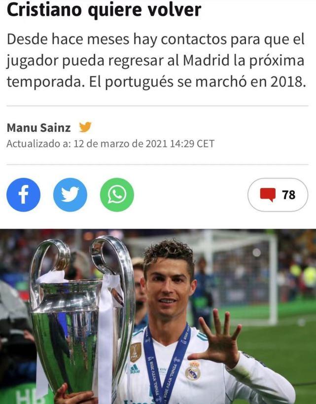 根据Sainz从尤文方面了解到的消息,如果皇马想C罗回归,那么尤文方面没有任何问题,他们愿意以合适的价格放行葡萄牙巨星。可以说,36岁的C罗今夏回归皇马的概率,正在逐渐的增大。