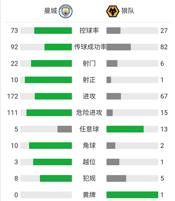 曼城4-1狼队 热苏斯双响马赫雷斯破门+造乌龙