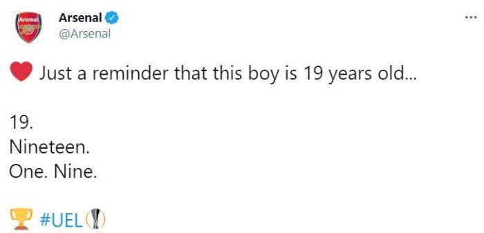 赛后,阿森纳官推“低调”的吹了一下萨卡。