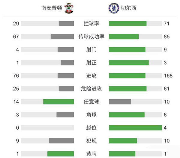 切尔西1-1南安普顿 南野拓实破门芒特点射