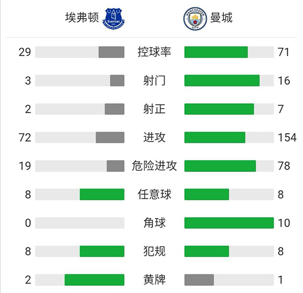全场比赛结束,曼城3-1力克埃弗顿,各项赛事豪取17连胜。