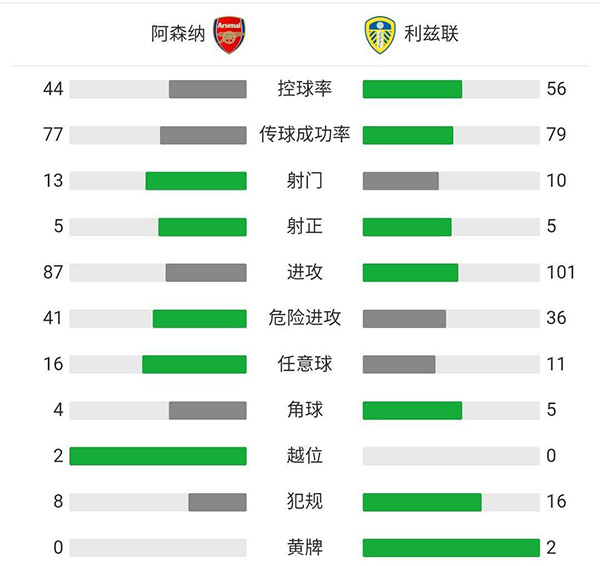 全场比赛结束,阿森纳4-2战胜利兹联。