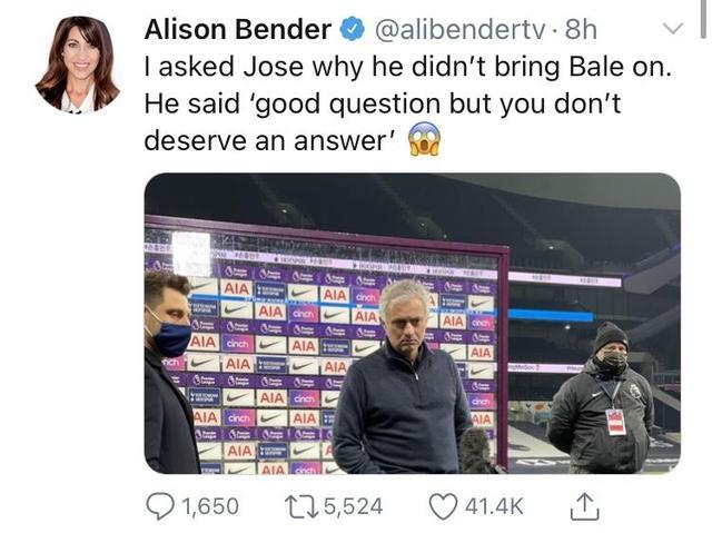 赛后记者询问穆里尼奥不换上贝尔的原因,穆帅回答道:“这是个好问题,但是你不配得到回答。”