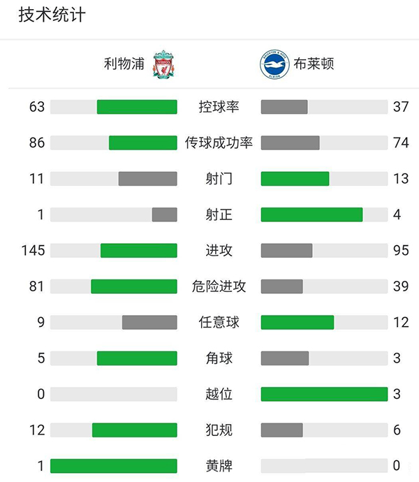 全场比赛结束,利物浦0-1不敌布莱顿,遭遇主场两连败。