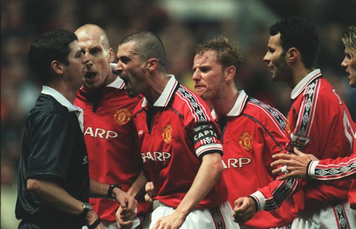 在索尔斯克亚球员时代,曼联队长罗伊·基恩等领袖,在场上不仅敢于与对手针锋相对,而且也大胆挑战裁判。